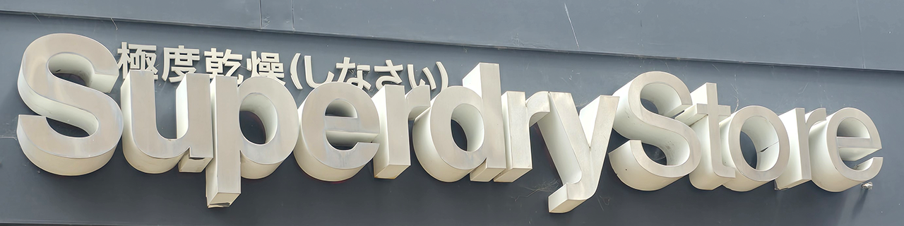 語学学校のすぐ近くに英表記の店名の上におかしな日本語「Superdry(極度乾燥しなさい)」と書かれた看板を発見したので、これはなんだ?と気になり入ってみたらおしゃれな洋服屋さんでした。